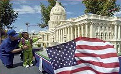 Amerikanische Sehenswürdigkeiten aus Lego-Steinen (Foto: Legoland Deutschland)(bro) Seit dem 3. Juli steht das Weiße Haus im bayerischen Günzburg. Es ist Teil einer Lego-Sonderausstellung im Eingangsbereich von Legoland Deutschland. Zu sehen sind Nachbauten berühmter amerikanischer Sehenswürdigkeiten, die schon an vielen Orten der Welt ausgestellt waren. Neben dem Weißen Haus, Wohnhaus der amerikanischen Präsidenten und ihrer Familien, faszinieren auch das Capitol, Sitz des amerikanischen Kongresses, sowie das Jefferson und das Lincoln Memorial durch ihre originalgetreue Bauweise. Die beiden Memorials erinnern an besonders bedeutende Präsidenten der USA. Sogar die Statuen im Inneren der Denkmäler wurden von den Lego-Modelldesignern liebevoll nachempfunden, wie z.B. Präsident Lincoln im Kleinformat. Muss man in Washington gut zu Fuß sein, um die weit auseinander liegenden Gebäude zu besichtigen, so kann man sie hier auf einer Fläche von ca. 175 qm ganz entspannt in unmittelbarer Nähe zueinander betrachten. Die Ausstellung wird bis September im Legoland Deutschland zu sehen sein.